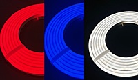 Neon-Flex 0815, 24VDC, 14 Watts/meter, , Dimmable, Cuts 72mm, Side Bend, RBW-SPEX, UL (Watts; White 5.4W/m, Blue 4.2W/M, Red 4 W/M). 2 wire New Technology, color changes when switching ON/OFF